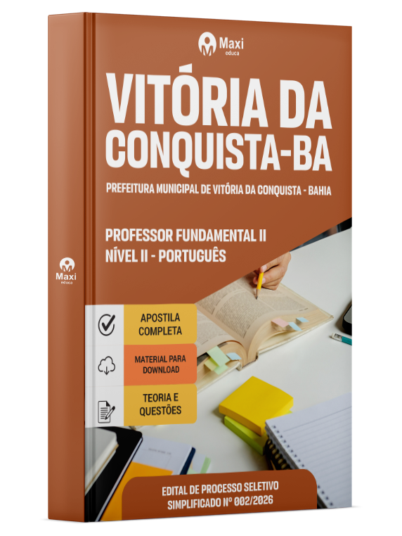 A Apostila Digital Prefeitura Municipal de Vitória da Conquista - BA em PDF 2026 - Professor Fundamental II Nível II - Português foi organizada para proporcionar um melhor rendimento na sua preparação, abordando cada conteúdo de forma objetiva e direcionada. Estude para o Concurso da Prefeitura Municipal de Vitória da Conquista - BA 2026 com um material de acordo com o Edital oficial para o cargo de Professor Fundamental II Nível II - Português.