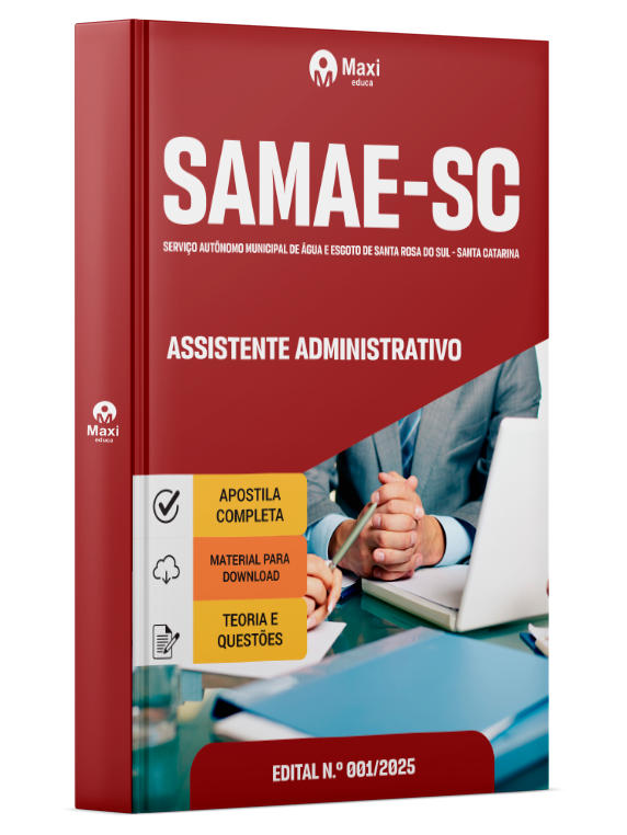 Liberação prevista para: 19/12/2025Apostila SAMAE de Santa Rosa do Sul-SC 2026 - Assistente Administrativo