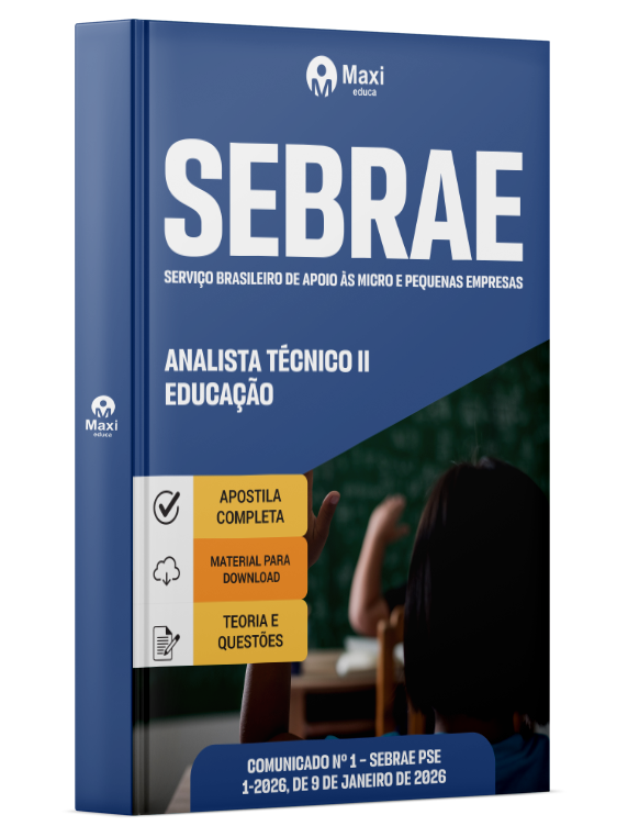 A Apostila Digital Serviço Brasileiro de Apoio às Micro e Pequenas Empresas (Sebrae) em PDF 2026 - Analista Técnico II - Educação foi organizada para proporcionar um melhor rendimento na sua preparação, abordando cada conteúdo de forma objetiva e direcionada. Estude para o Concurso da Serviço Brasileiro de Apoio às Micro e Pequenas Empresas (Sebrae) 2026 com um material de acordo com o Edital oficial para o cargo de Analista Técnico II - Educação.