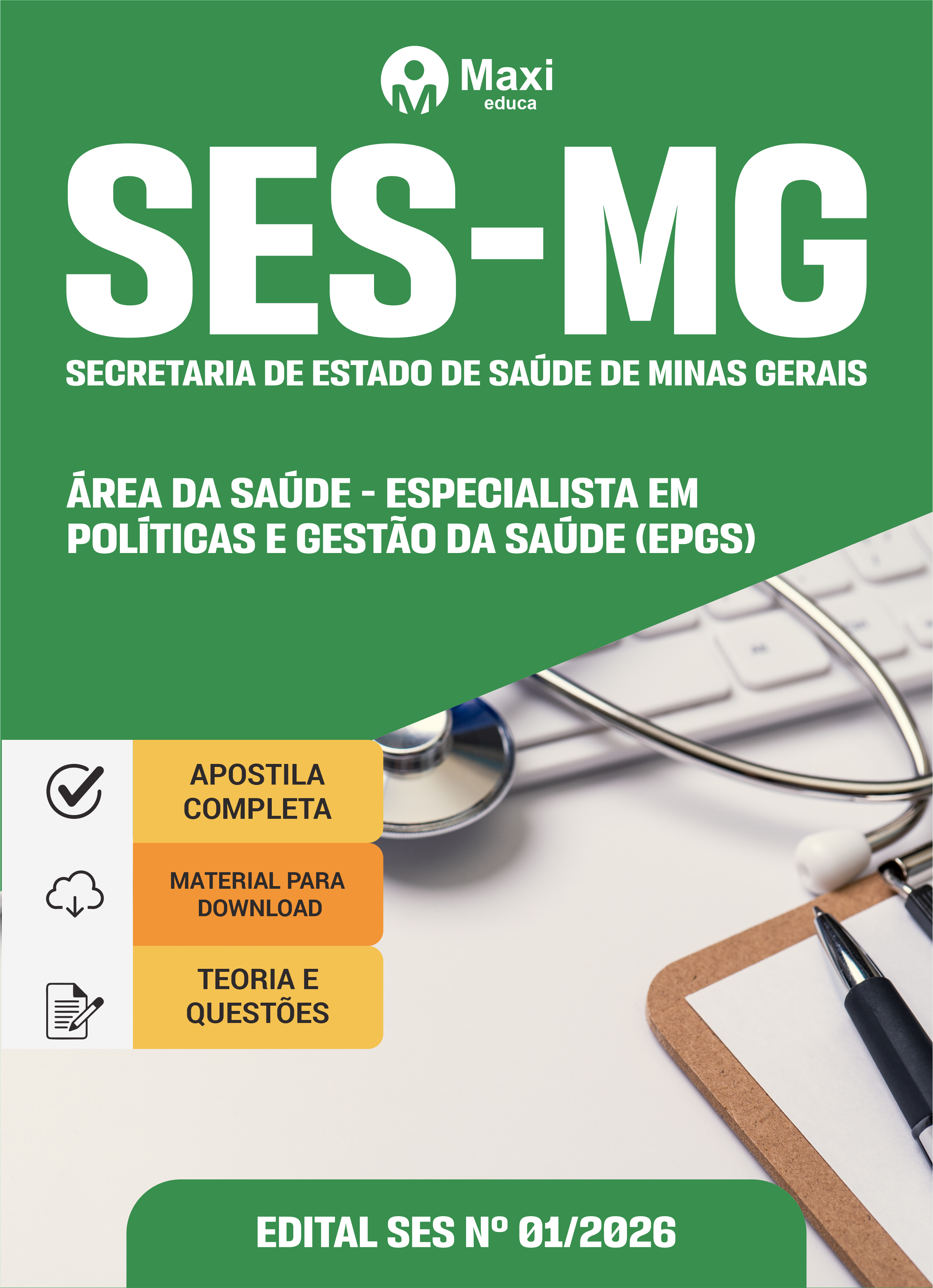 Liberação prevista para: 24/01/2025Apostila SES-MG 2026 - Especialista em Políticas e Gestão da Saúde (EPGS) - Área da Saúde