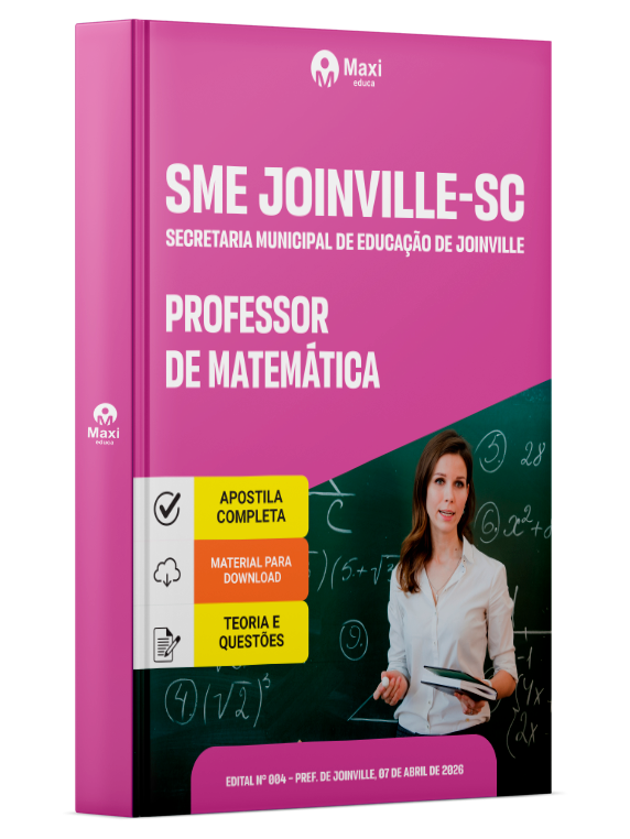 A Apostila Digital Secretaria Municipal de Educação de Joinville-SC em PDF 2026 - Professor de Matemática foi organizada para proporcionar um melhor rendimento na sua preparação, abordando cada conteúdo de forma objetiva e direcionada. Estude para o Concurso da Secretaria Municipal de Educação de Joinville-SC 2026 com um material de acordo com o Edital oficial para o cargo de Professor de Matemática.