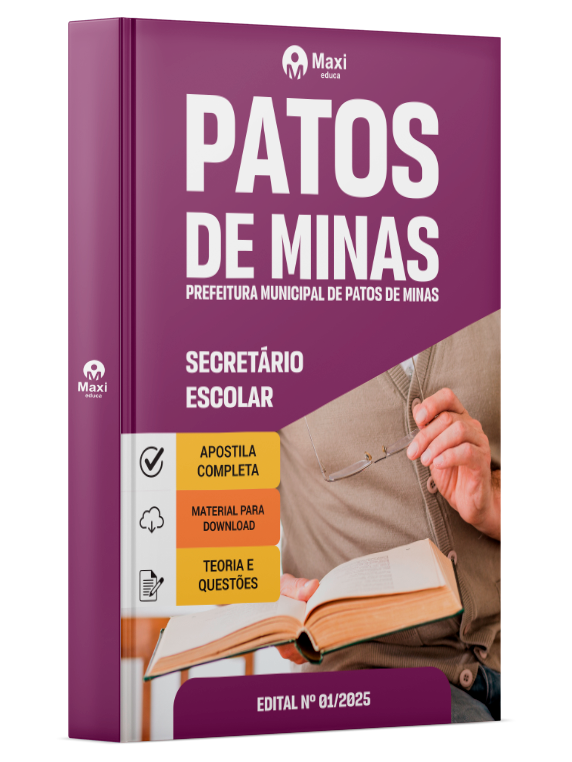 A Apostila Digital Secretaria Municipal de Educação de Patos de Minas-MG em PDF 01 - 2025 - Secretário Escolar foi organizada para proporcionar um melhor rendimento na sua preparação, abordando cada conteúdo de forma objetiva e direcionada. Estude para o Concurso da Secretaria Municipal de Educação de Patos de Minas-MG 01 - 2025 com um material de acordo com o Edital oficial para o cargo de Secretário Escolar.