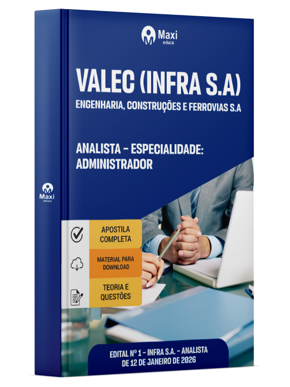 Liberação prevista para: 22/01/2026Apostila VALEC 2026 - Analista - Administrador
