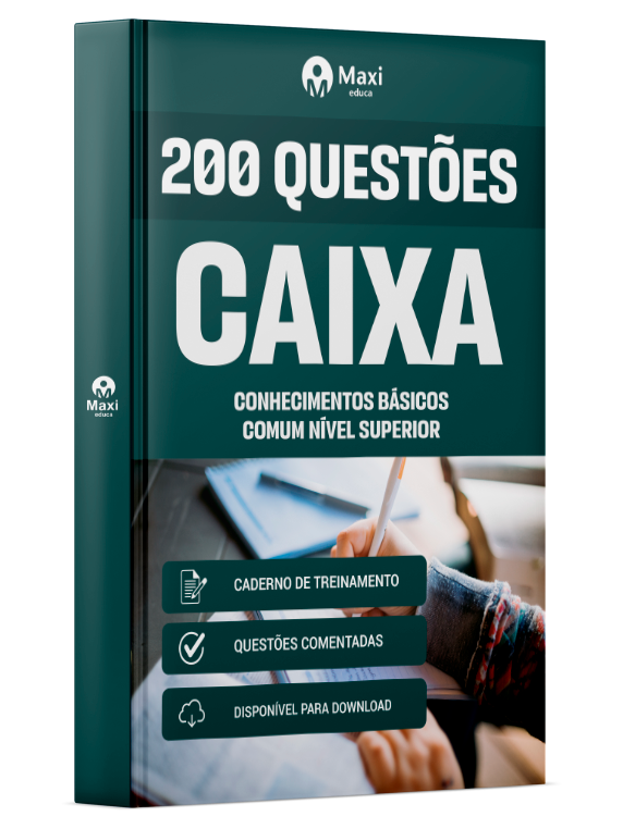 Liberação prevista para: 28/11/2025Caderno de Questões CAIXA - Conhecimentos Básicos - Comum Nível Superior - 200 Questões Comentadas