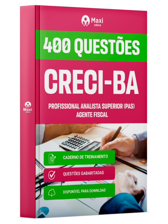 Liberação prevista para: 22/04/2026Caderno de Questões CRECI-BA - Profissional Analista Superior (PAS) - Agente Fiscal - 400 Questões Gabaritadas