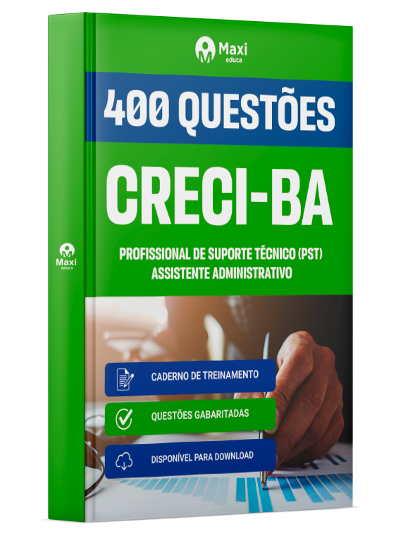 Liberação prevista para: 20/04/2026Caderno de Questões CRECI-BA - Profissional de Suporte Técnico (PST) - Assistente Administrativo - 400 Questões Gabaritadas