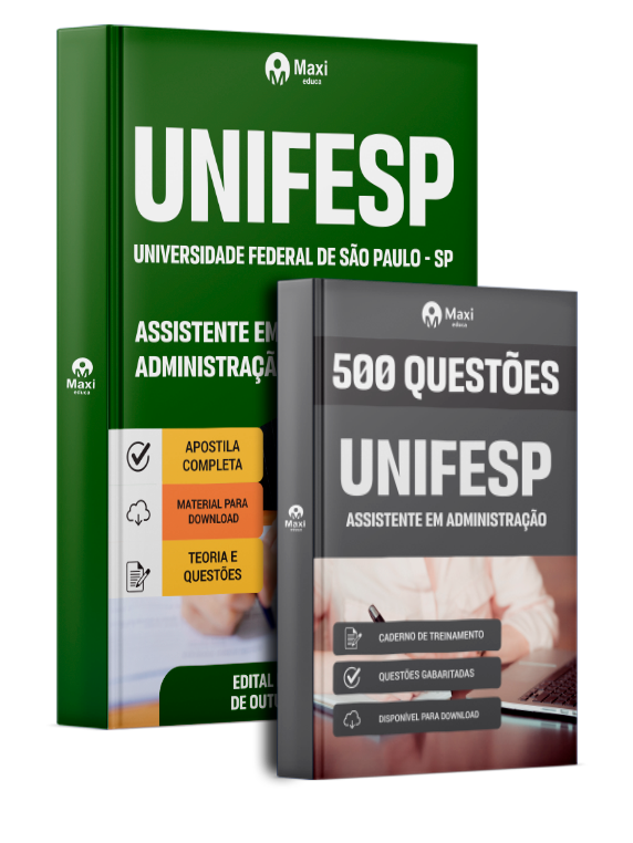 - Apostila UNIFESP 2025 - Assistente em Administração: reúne todo o conteúdo teórico exigido no último edital, com explicações claras e exercícios práticos elaborados por especialistas em concursos.