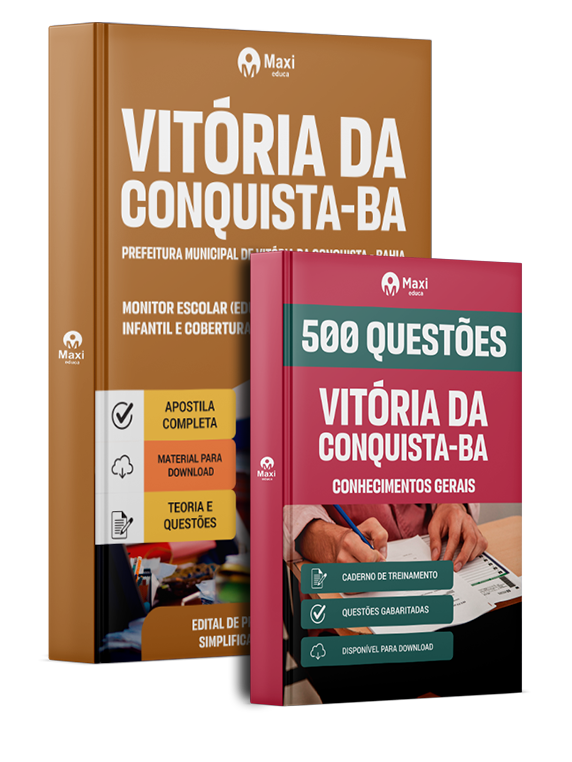 - Apostila Prefeitura de Vitória da Conquista - BA 2026 - Monitor Escolar (Educação Infantil e Cobertura das AC'S): reúne todo o conteúdo teórico exigido no último edital, com explicações claras e exercícios práticos elaborados por especialistas em concursos.